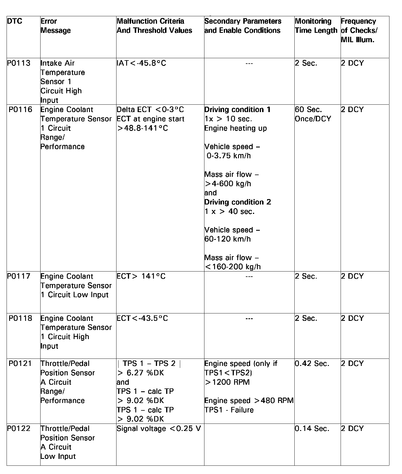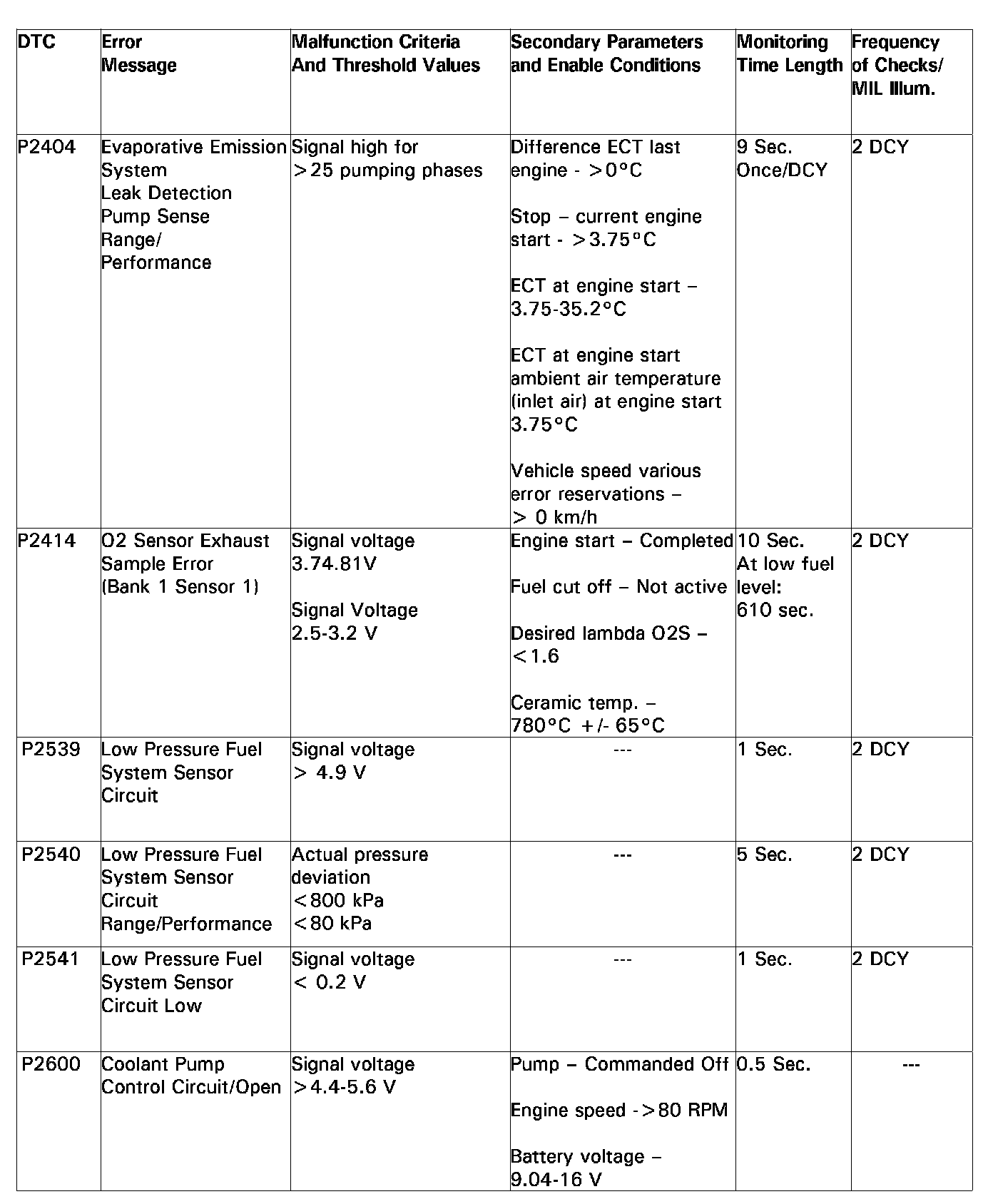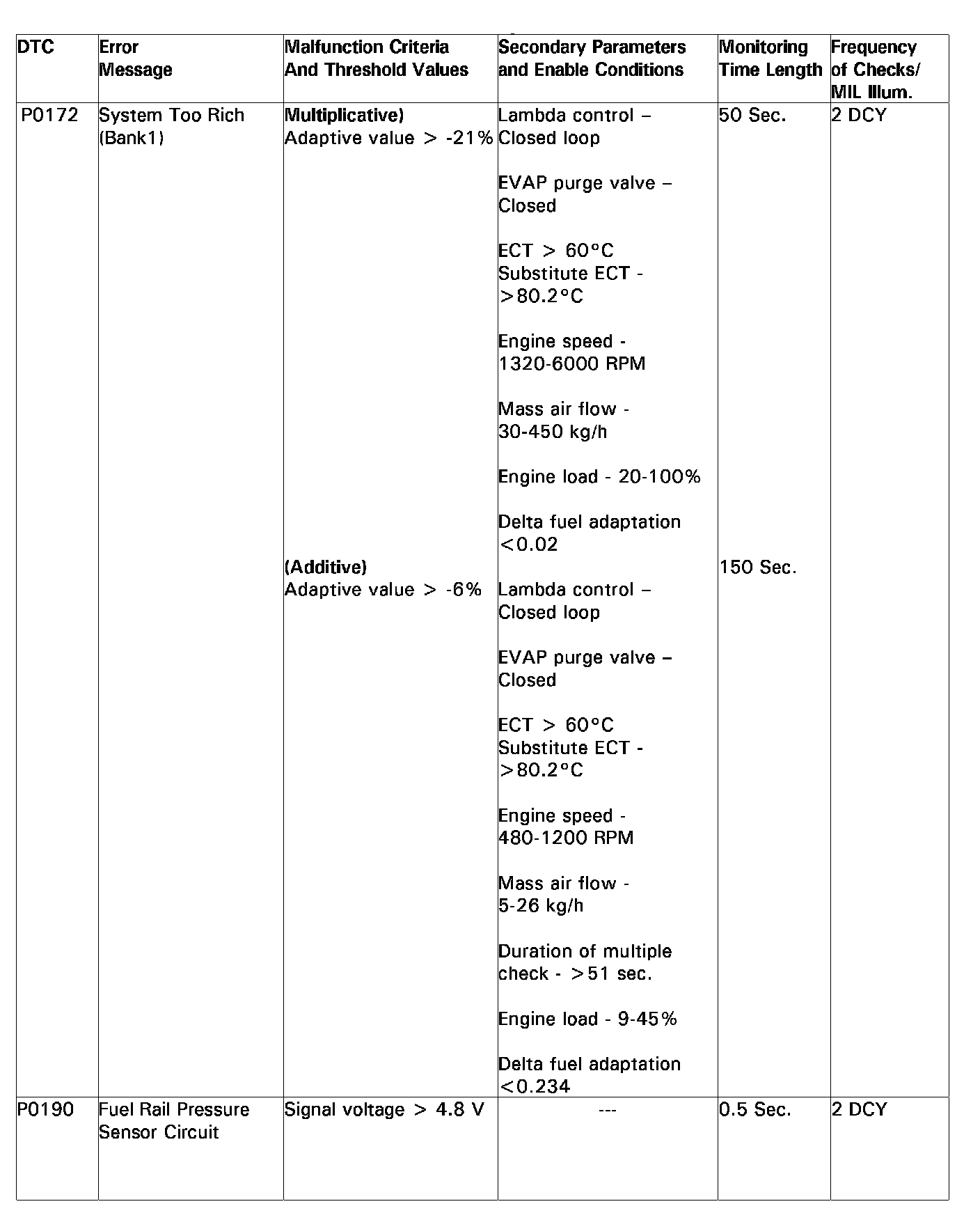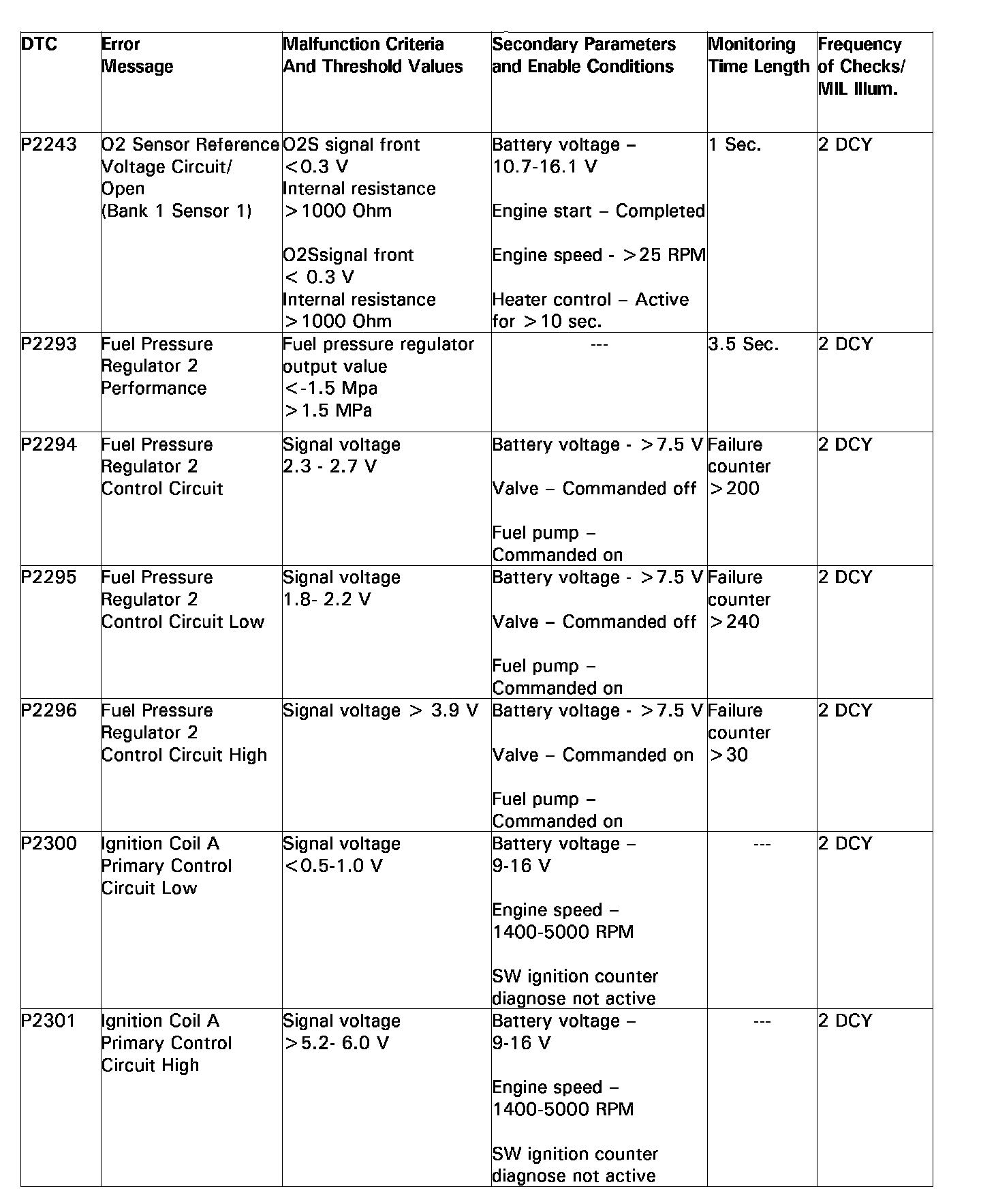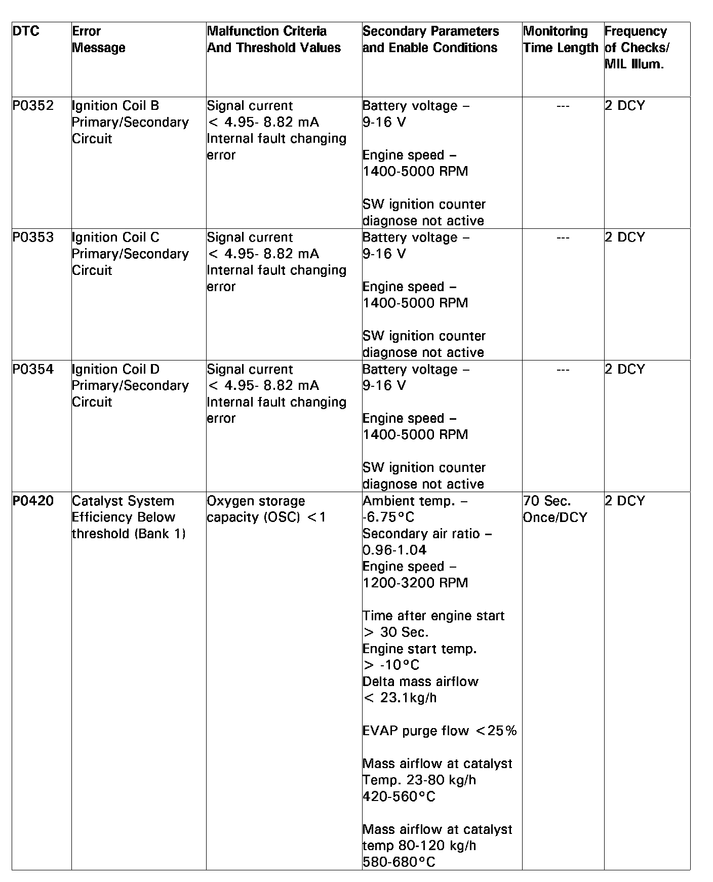 .02.00.00 - OBD DTC SUMMARY TABLEDTC P000A - P025D: