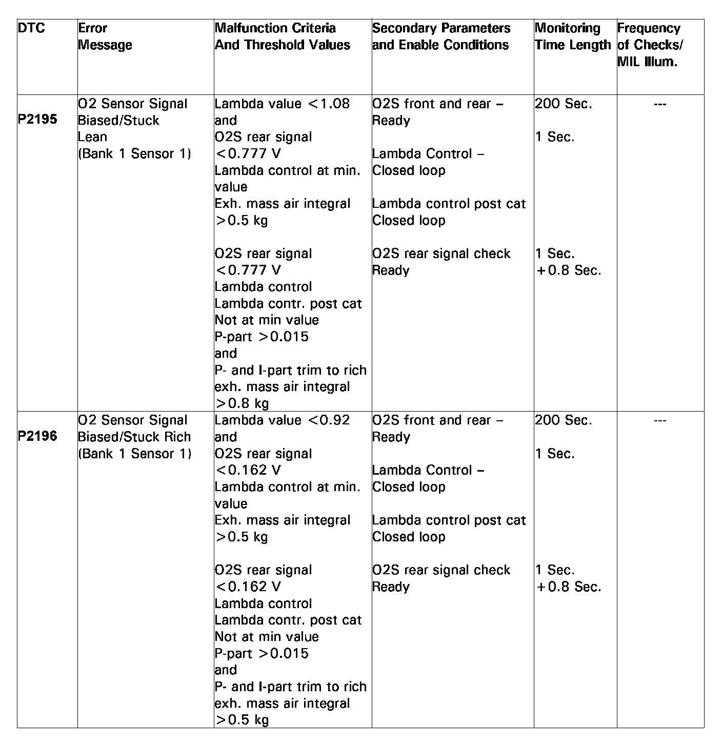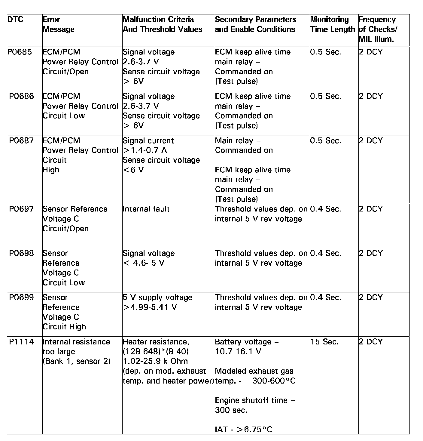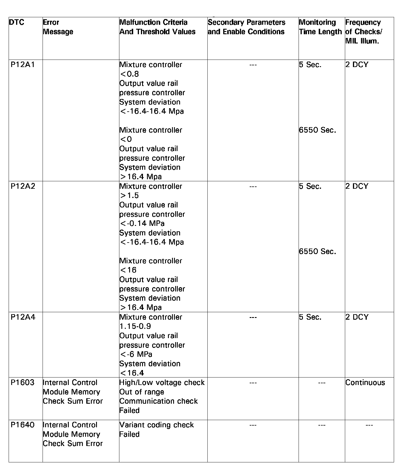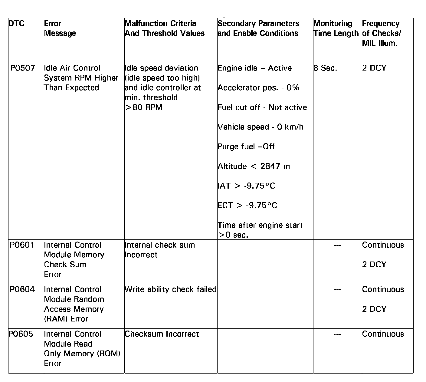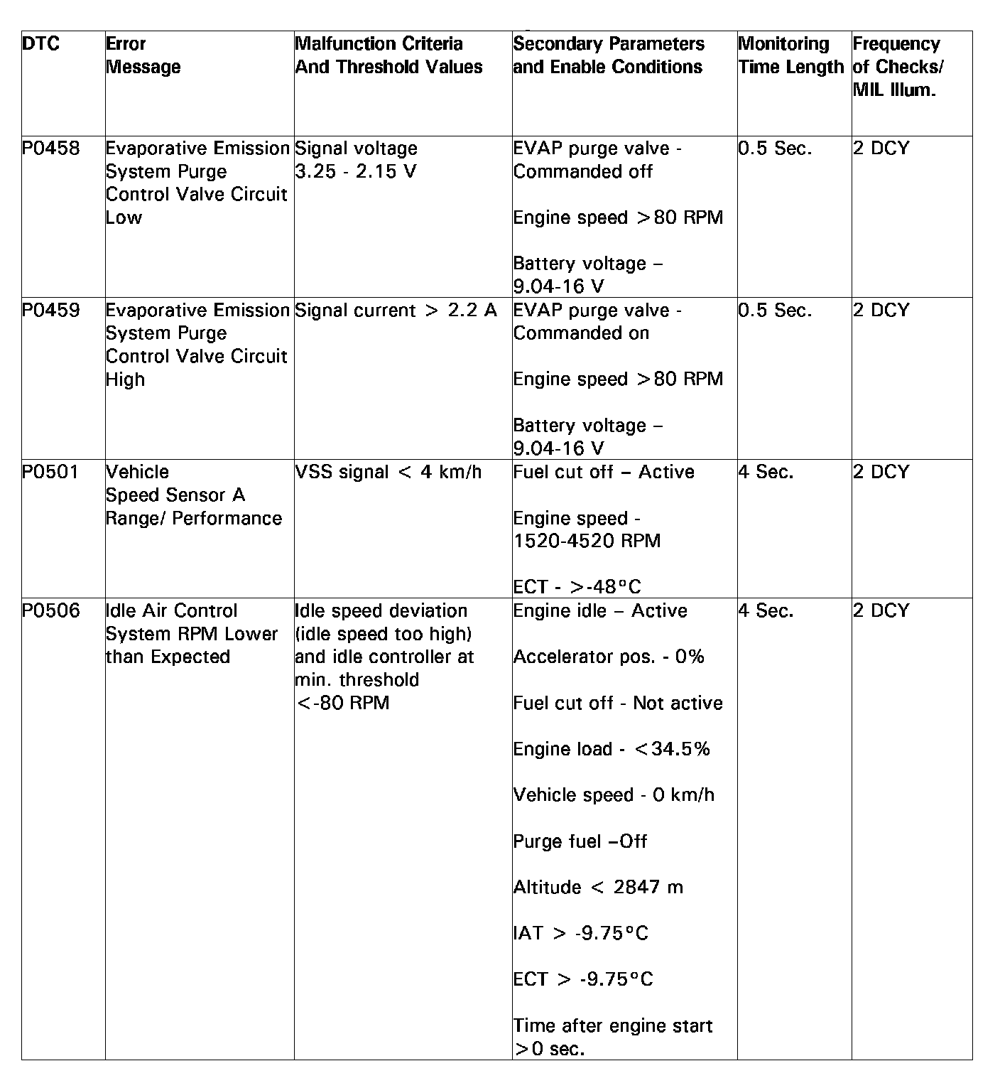 .02.00.00 - OBD DTC SUMMARY TABLEDTC P000A - P025D: