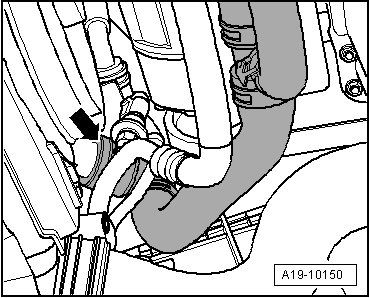 - Disengage the quick acting coupling - arrow - and disconnect the coolant hose from the radiator.