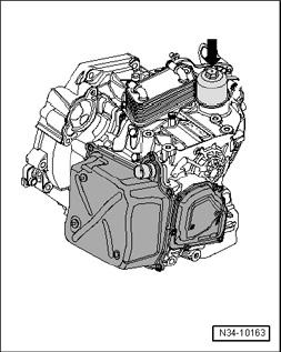 - Place used oil collection and extraction device V.A.G 1782 or drip tray V.A.G 1306 under transmission.