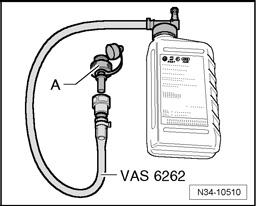 - Install adapter - A - from Adapter For Oil Filling VAS 6262 hand-tight in inspection hole.