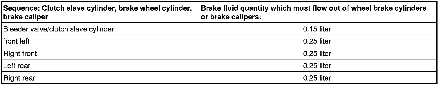 - Open bleeder screw and let the corresponding amount of brake fluid (see table) flow out. Close bleeder screw. Torque: Chassis, Brake System=> Chassis, Brake System 47 Brake Caliper, Rear, ServicingBrake Caliper, Rear, Servicing