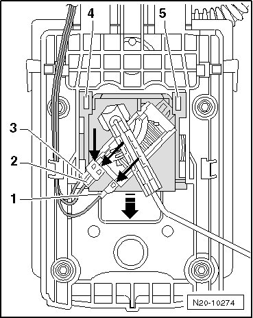 - Disengage the electrical connectors - 1 through 3 - and disconnect them. Bend the retaining hooks on the connector back.