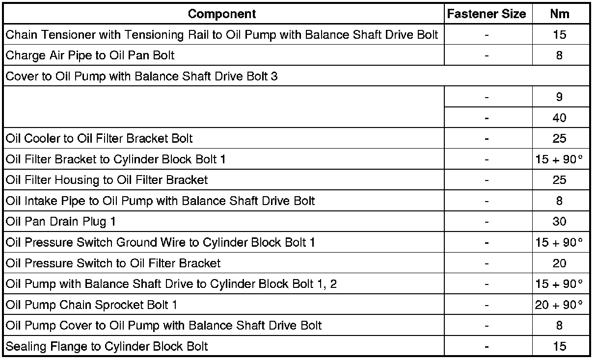 • 3 For bolt tightening clarification, refer to => [ Oil Pump with Balance Shaft Drive Overview ] Service and Repair and see - items 6 and 8 -.