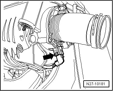 - Disconnect harness connector - arrow - on rear side of air filter housing.