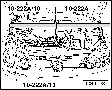 - Support the engine and transmission with (10 - 222A), (10 - 222A/10) and (10 - 222A/13). Do not lift up.
