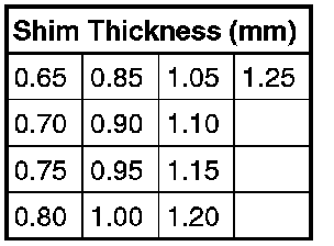If the size of shim required is larger than that listed in the table, two shims totaling the correct value can be installed. First the thicker adjustment shim must be inserted for this.