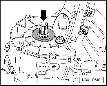 - Replace the O-ring - arrow - on the stub shaft - 2 - and grease the stub shaft splines with grease (G 000 100).