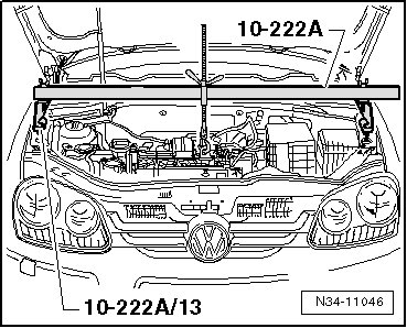 - Install the (10-222 A) using the (10-222 A/13) in front of the engine hood support.