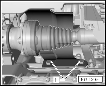 - Remove the drive axle shield bolts - 1 - from the engine.