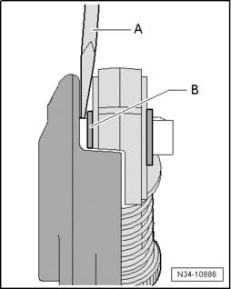 - Position a flat head screwdriver -A- between the bushing -B- and the relay lever.