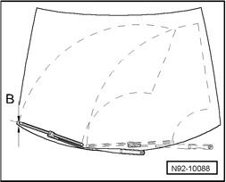 Distance -B- between tips of wiper lips and upper edge of plenum chamber cover must be 10 mm.