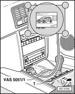 - With ignition switched off, connect tester VAS 5051 to diagnosis connection using diagnosis cable VAS 5051/1 or VAS 5051/3.