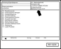 ^ If the display does not indicate as described in the work sequence, refer to Operating instructions for Vehicle Diagnosis, Testing and Information System VAS 5051.
