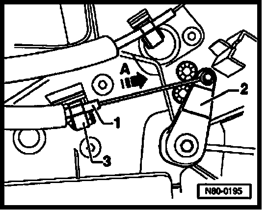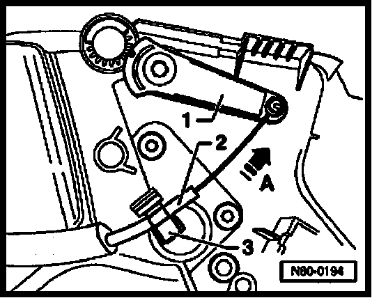 - Push central flap lever to stop -arrow A- and attach outer cable -2- with clip -3-.