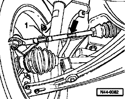 - Adjust toe by turning tie rod to left and/or right. To do this position wrench at nut - arrow - on tie rod.