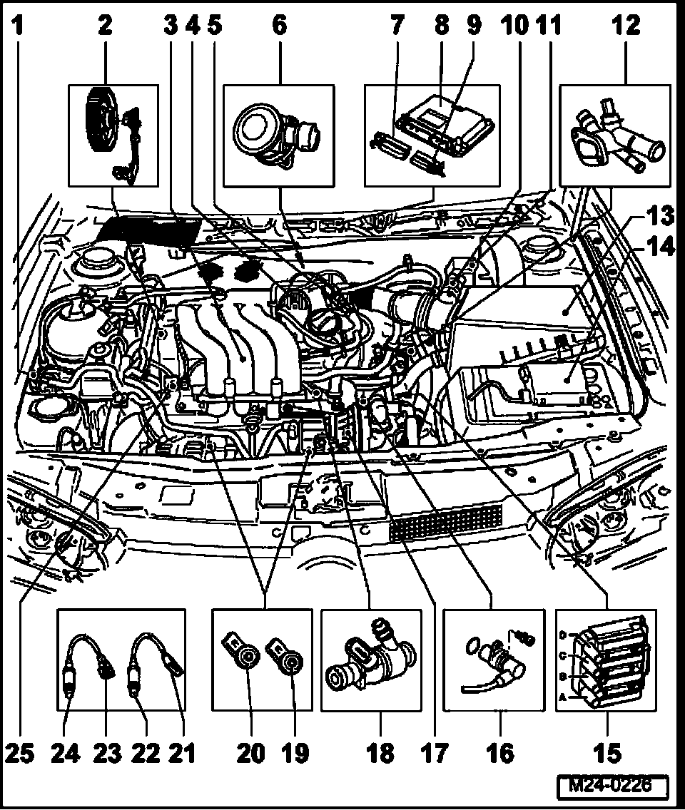 Component Locations, Overview (Vehicles With Engine Code AVH, BEV)