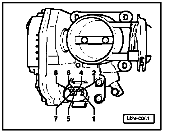 - Measure resistance of Throttle drive (power accelerator actuation) -G186- in Throttle Valve Control Module -J338- between terminals 3 + 5