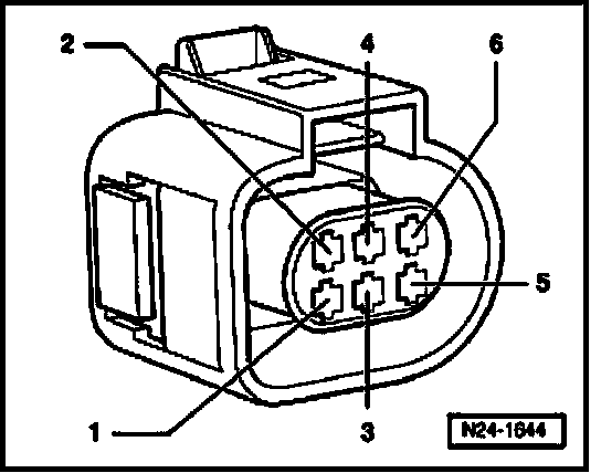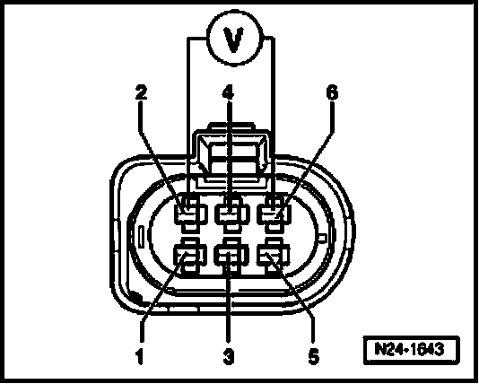 - Connect multimeter to connector terminals 2 + 6 for voltage measurement.