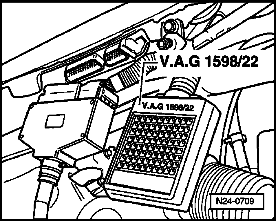 - Connect V.A.G1598/22 test box at control module wiring harness.