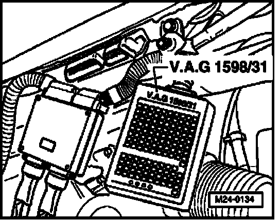 - Connect V.A.G1598/31 test box at control module wiring harness. Engine Control Module (ECM) is not connected.