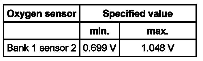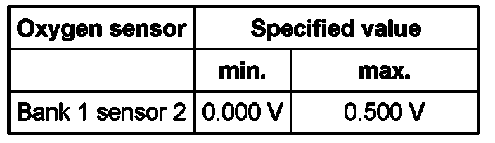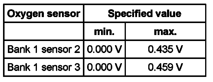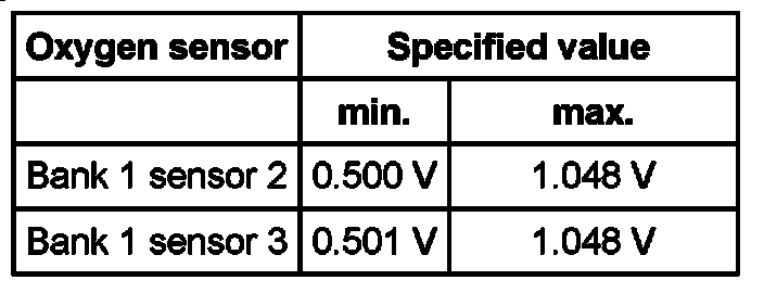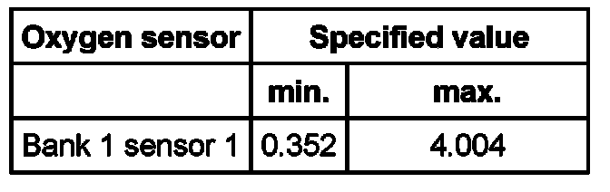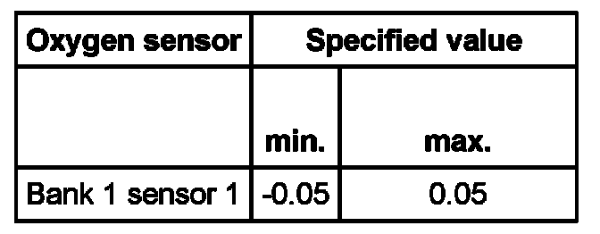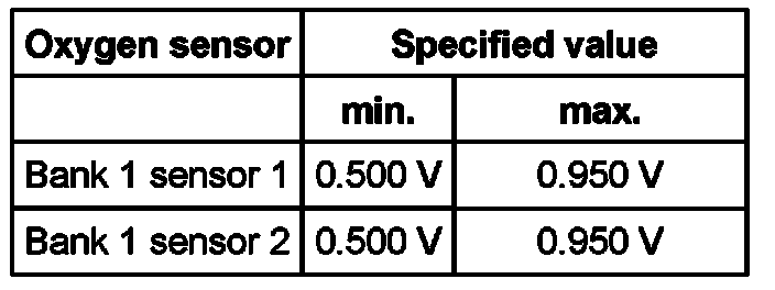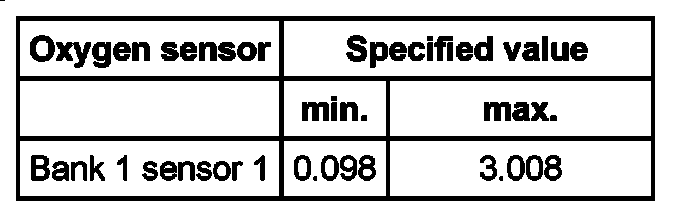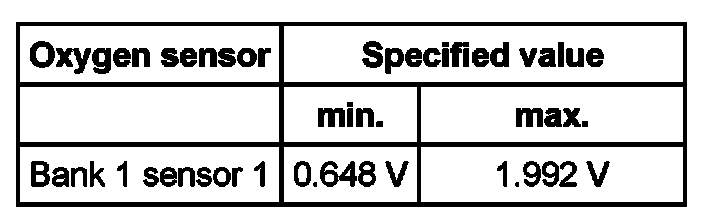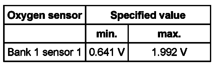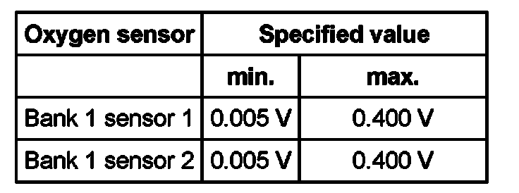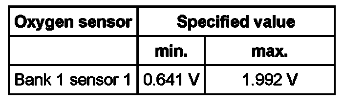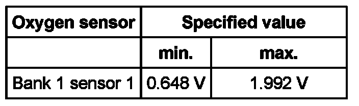 Oxygen sensor Specified value
