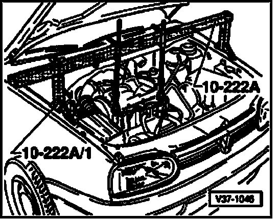 - Position 10-222A engine support bridge with 10-222A/1 brackets as shown and support engine/transmission in this position.