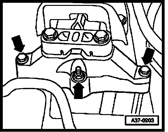 - Remove mounting bolts (arrows) from transmission holder.