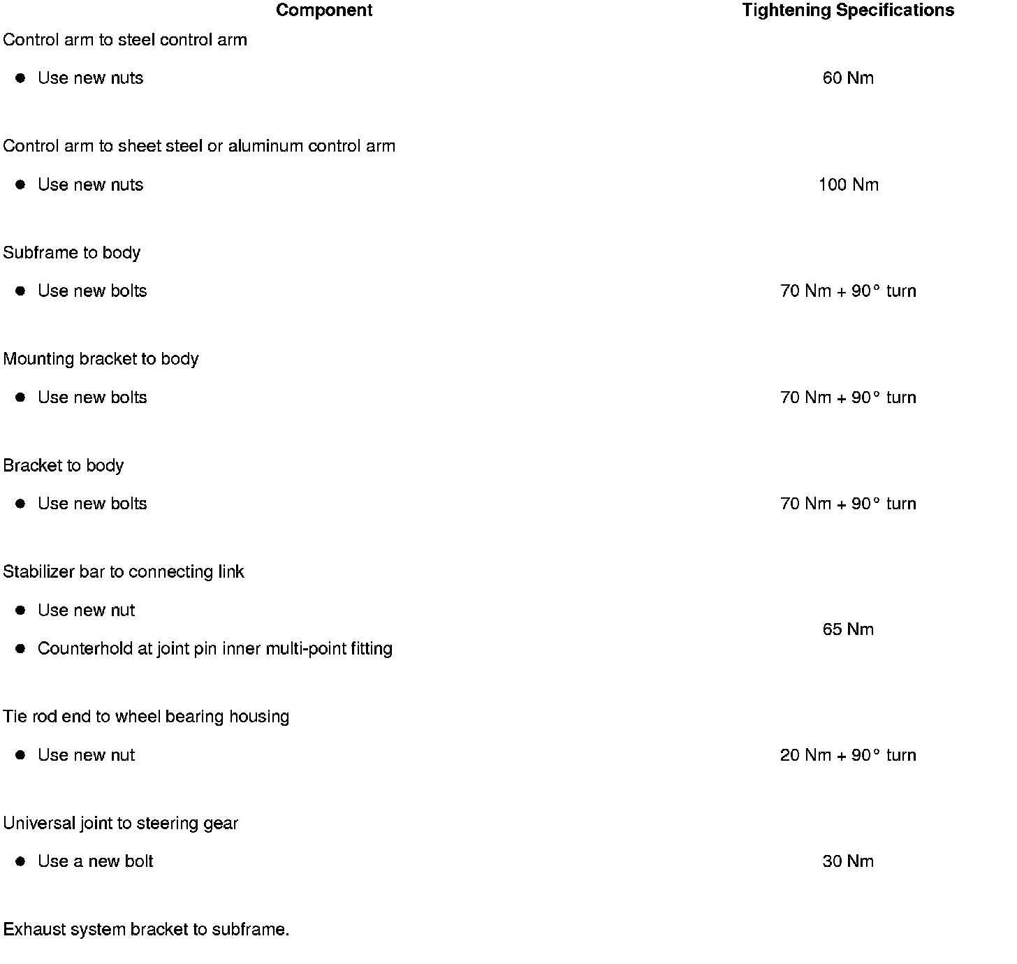 Tightening Specifications
