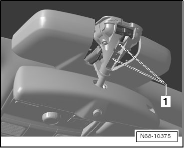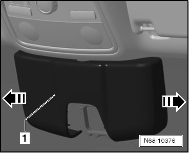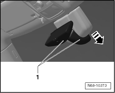 - Carefully remove the interior rearview mirror - 1 - from the plate in - direction of arrow -.
