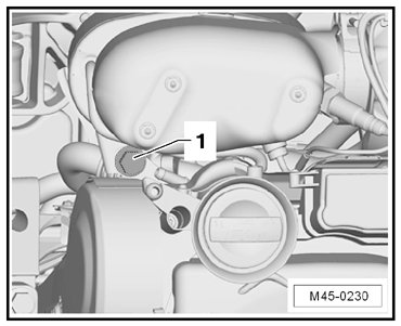 - Remove the bolt - 2 - and then remove the bracket - 3 - together with the Exhaust Pressure Sensor 1 (G450) in - direction of arrow -.