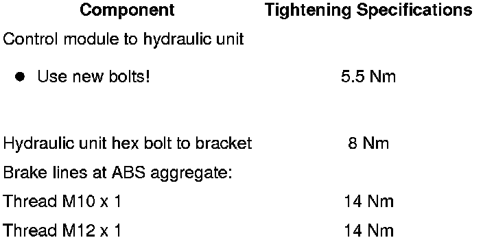 - Bolt hydraulic unit and control module with new Torx bolts supplied.