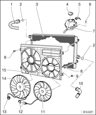 • Removing and installing, refer to => [ Coolant Fan and Coolant Fan 2 ] Service and Repair.