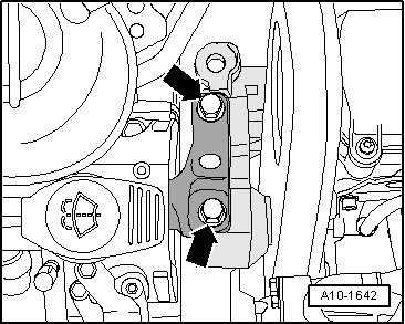 - Remove the transmission mount to transmission mount bracket bolts - arrows - from the top.