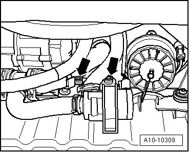 - Remove the auxiliary coolant pump bracket bolts - arrows - and disconnect the electrical connector.