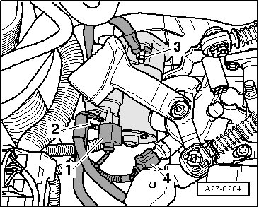 - Free up the wire - 2 - behind the coolant pipe - 3 -.