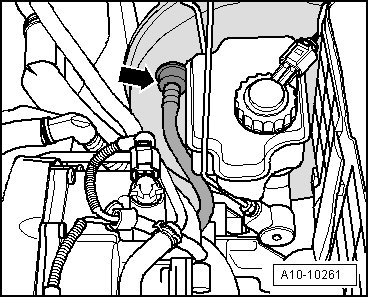 - Disconnect the vacuum hose - arrow - from the brake booster.