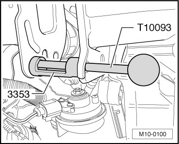 - Gently lift the engine and transmission using the (VAG 1383A).