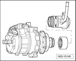 An electromagnetic clutch installed on the A/C compressor creates a frictional connection between the ribbed belt pulley and A/C compressor crankshaft when the air conditioning system is switched on.