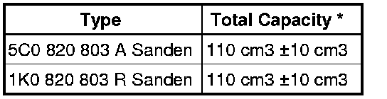 * This quantity of refrigerant oil is in a replacement A/C compressor and equates to the total capacity.