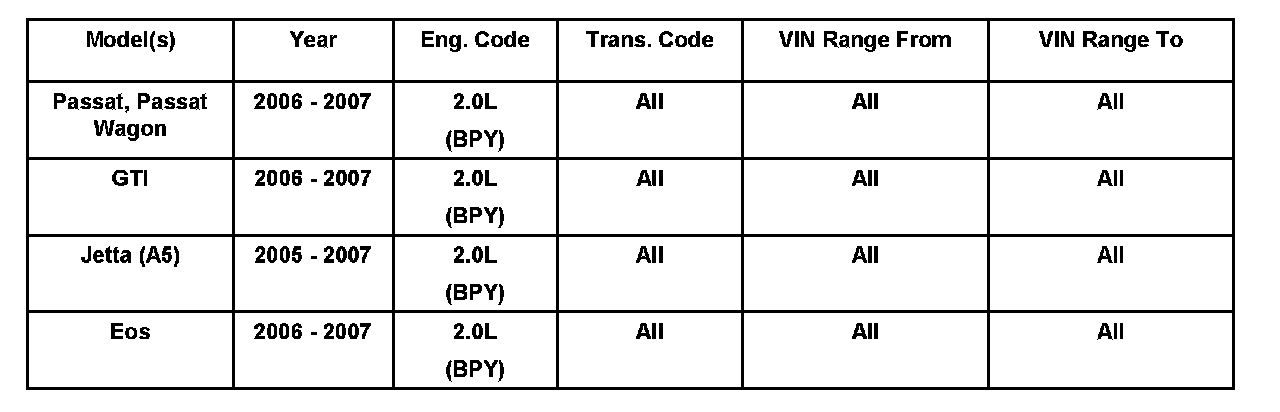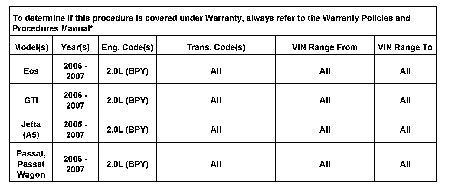 If no excessive wear can be found in the high pressure fuel pump cam follower or intake camshaft lobe, or if the damage is found in camshafts with part number 06F109101B, create a Technical Assistance Contact Ticket under the Concern Type Engine and Engine Electronics in ElsaWeb.