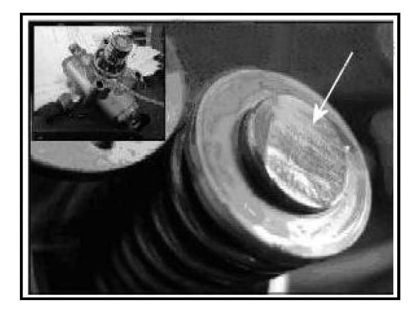 The wear on the camshaft lobe can also lead to wear on the base of the high pressure fuel pump cam follower.