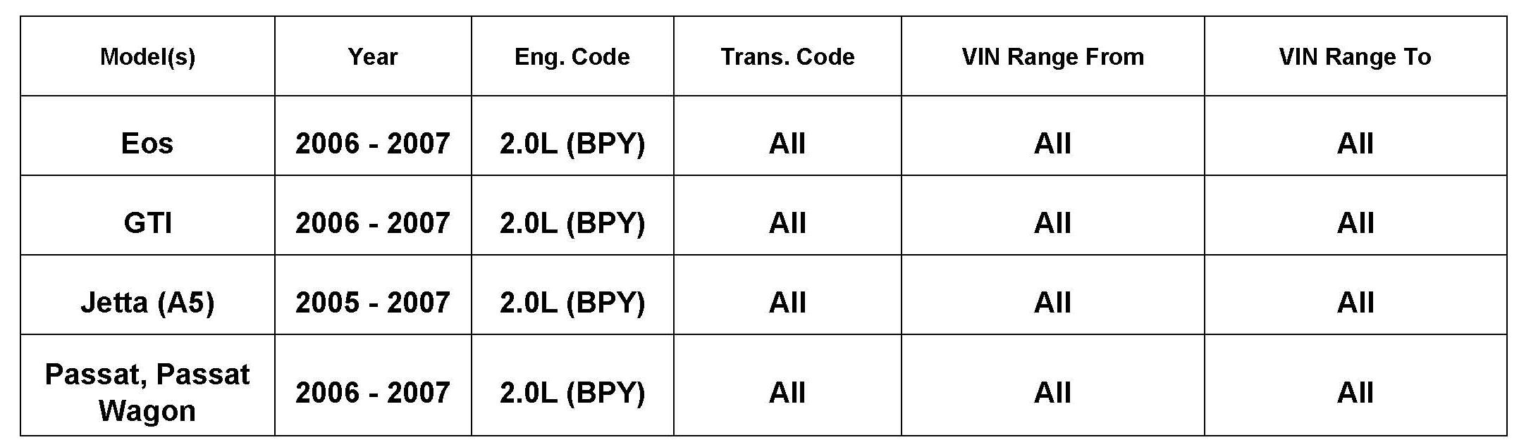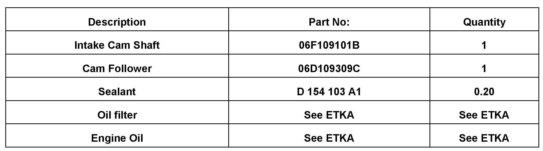 If no excessive wear can be found in the high pressure fuel pump cam follower or intake camshaft lobe, or if the damage is found in camshafts with part number 06F109101B, create a Technical Assistance Contact Ticket