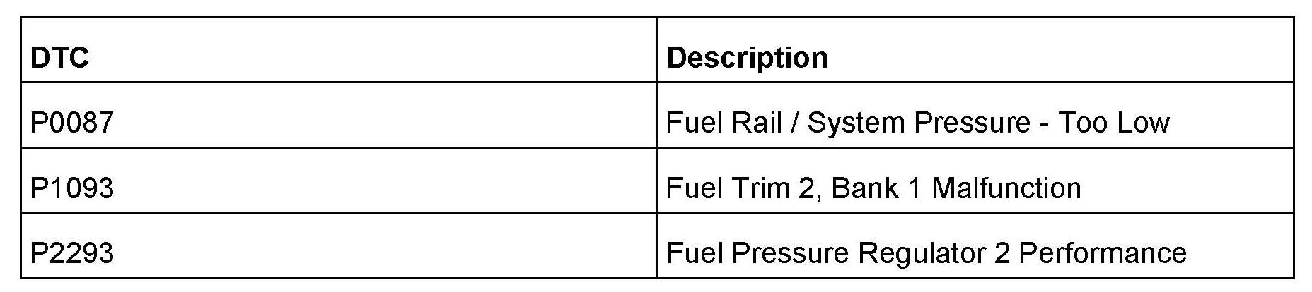 Engine/Fuel - MIL ON/DTC's DTC P0087/P1093/P2293