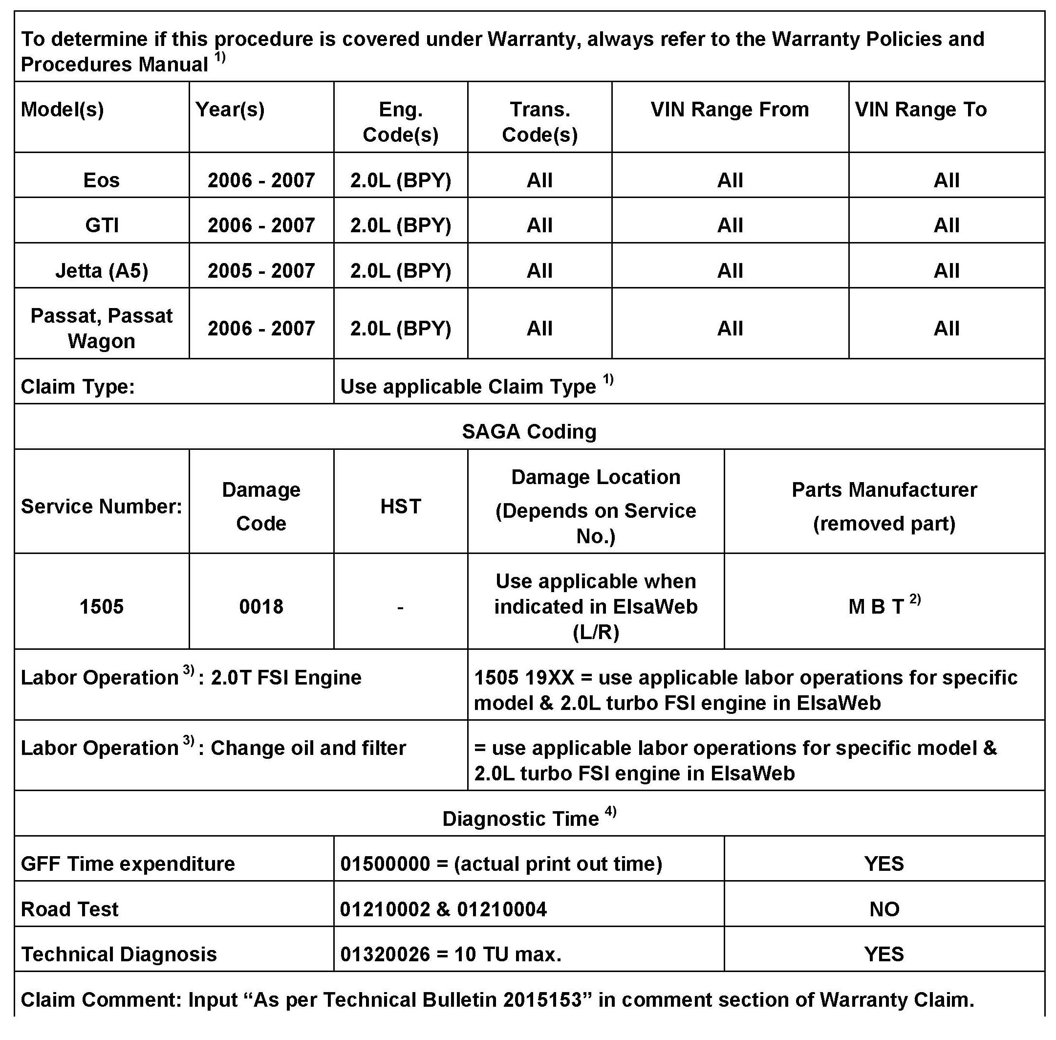 2015153 Supersedes T.B. Group 15 number 09-01 dated March 12, 2009 to include an oil and oil filter change in the procedure and update vendor code.