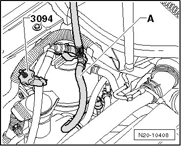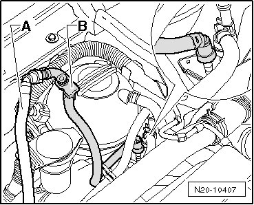 - Connect the (VAG 1397A) with the T piece and 6 mm diameter hose between the vacuum line - 1 - and the LDP - 2 -.