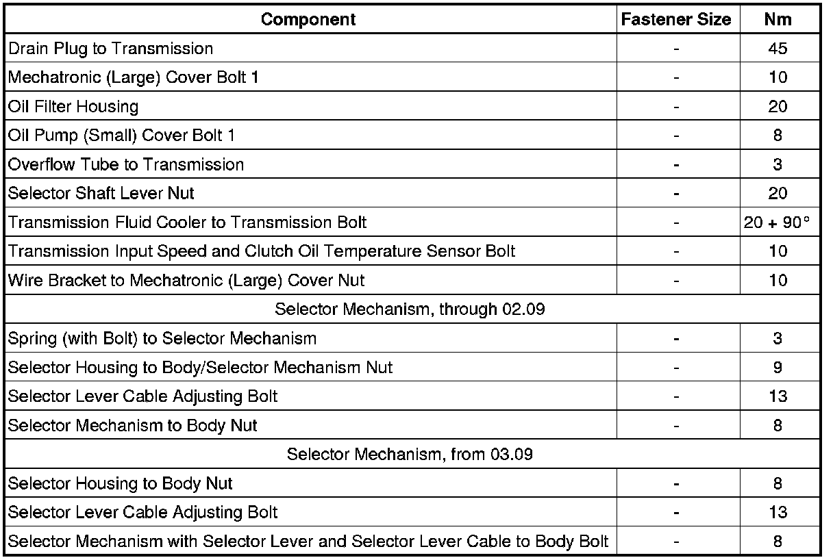 Jetta from MY 2005 through 2010, Jetta SportWagen (US)/Jetta Wagon (Canada) for MY 2009, Jetta SportWagen (US)/Golf Wagon (Canada) from MY 2010 => [ Transmission to Engine Tightening Specifications ]