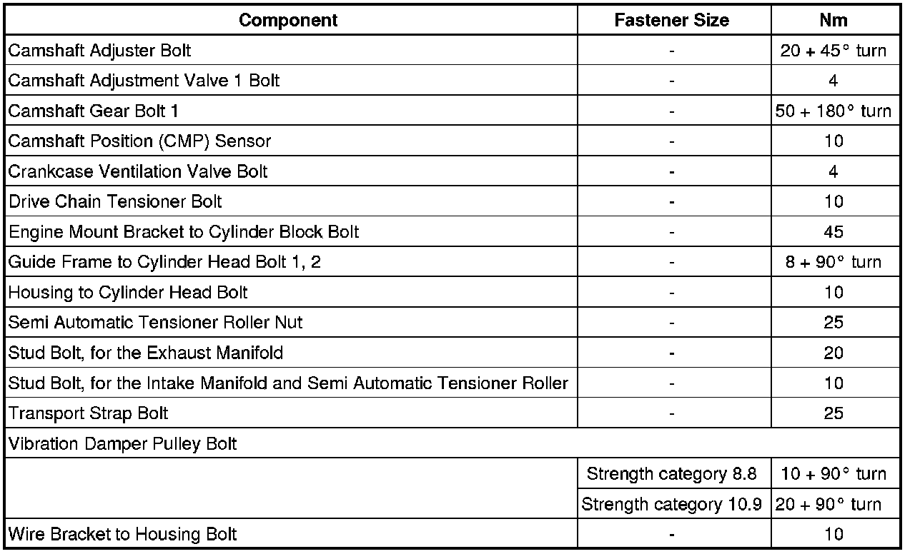 Cylinder Head, Valvetrain - Fastener Tightening Specifications