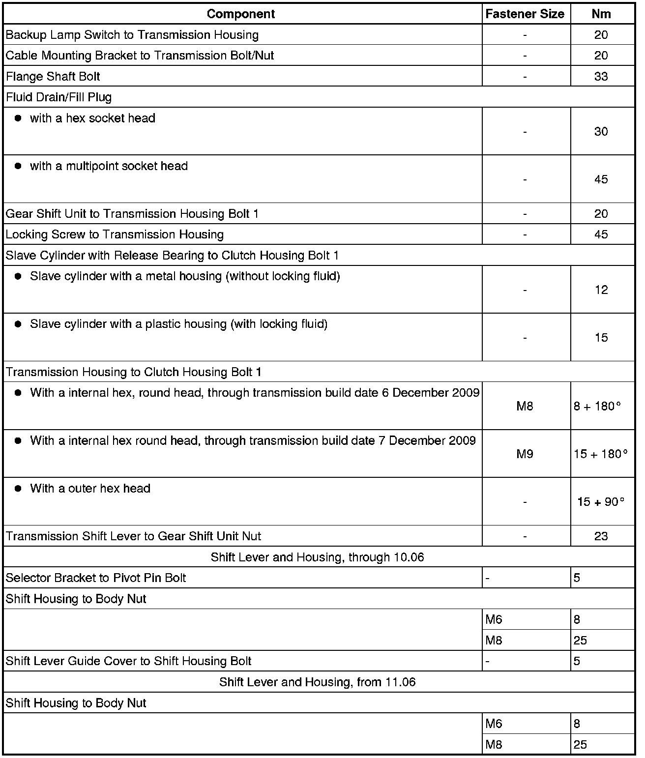 Jetta from MY 05 through 10, the Jetta SportWagen (US)/Jetta Wagon (Canada) for MY 09, the Jetta SportWagen (US)/Golf Wagon (Canada) from MY 10 => [ Transmission to Engine Tightening Specifications ]