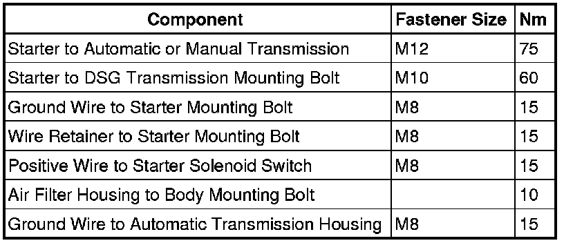 Starter Tightening Specifications